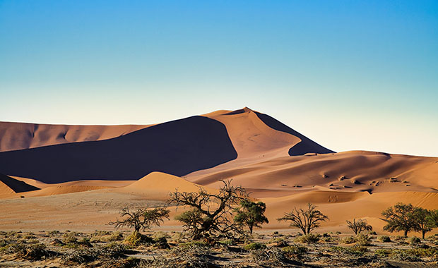 Namibia is one of Africa’s most extraordinary safari destinations, a country where starkly beautiful desert landscapes host uniquely adapted wildlife. Rather than featuring classic savannahs, a tour here showcases the world’s oldest desert, towering red dunes, salt pans, and a dramatic coastline where the ocean meets the sands. The adventure often begins in the Namib Desert at the iconic Sossusvlei, where visitors can climb some of the world’s tallest sand dunes, like Dune 45 or Big Daddy, for breathtaking sunrise views over the surreal white clay pan of Deadvlei.